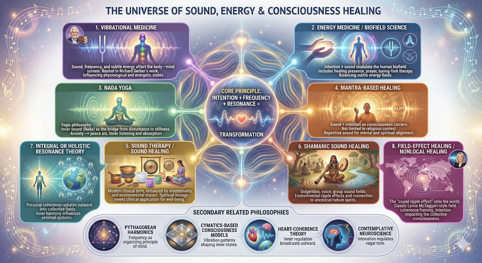 - Vibrational Medicine: Sound, frequency, and subtle energy affecting the body-mind system